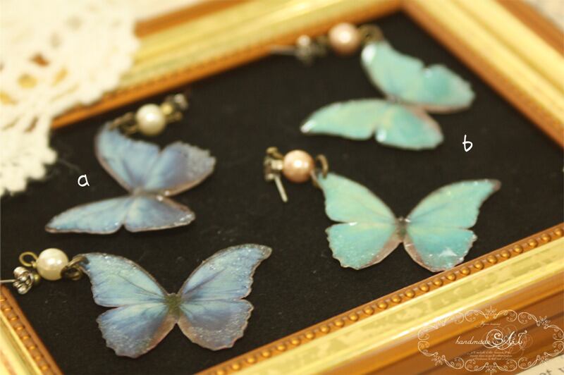 表は蝶の写真、裏はラメ入りのカラーで塗ってあり、