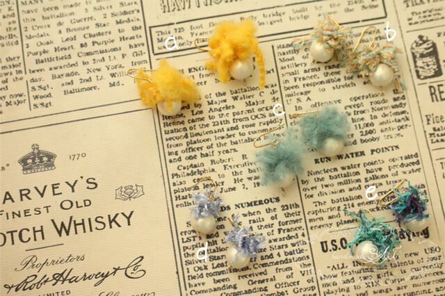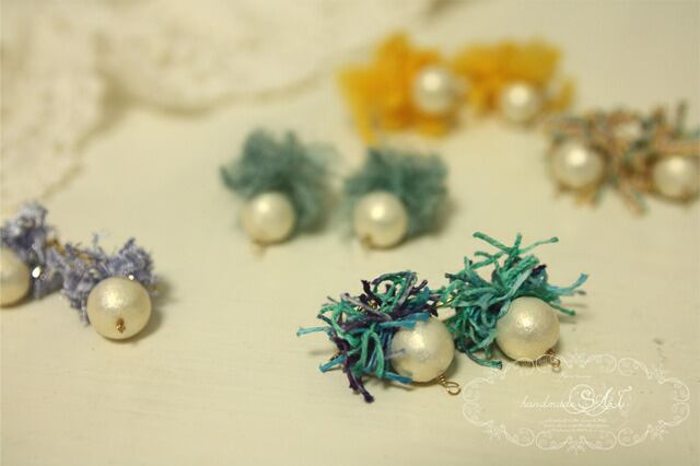 個性的な毛糸とコットンパールを合わせました。